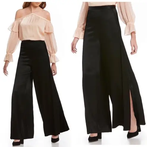 1. State black satin side slit trousers 1.State black satin wide leg slit pants size 4. These have a... Show more