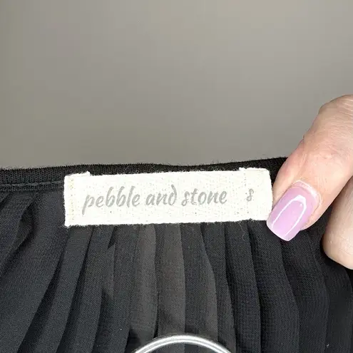 Pebble and Stone split pleated chiffon layered V-Neck tank top.