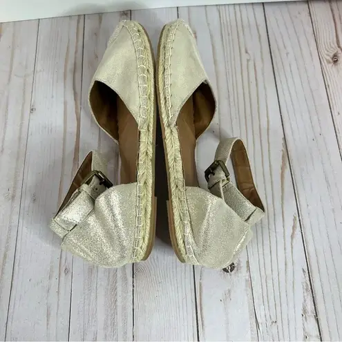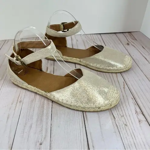 14Th & Union espadrille shoes 10 cream silver metallic leather ankle strap flat Gold - $23 - From Baldi