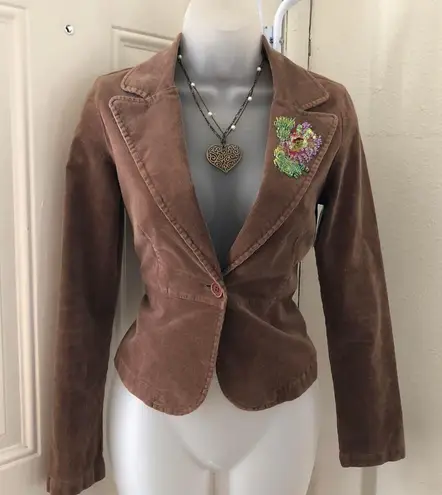 2000s Y2K Unique Brown velvet corduroy blazer jacket embroidered flower patch on the lapel - $44 - From Victoria