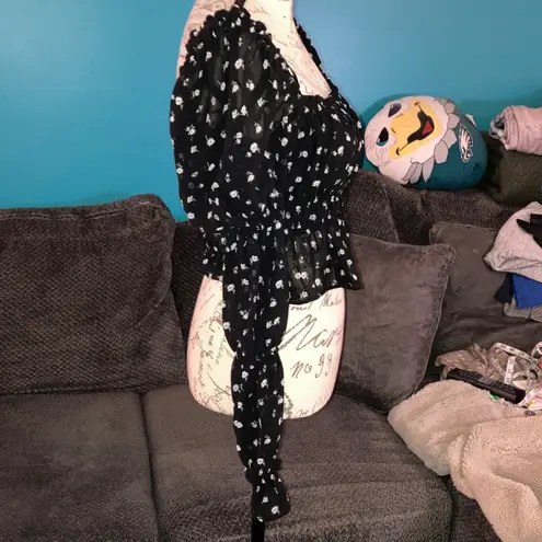 π§ββοΈS917: H&M Off the Shoulder See Through Crop Top Size Medium Black with white flowers Elastic ar... Show more