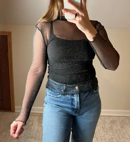 This super stretchy black sparkly mesh top is perfect for layering. Its fun and festive design makes... Show more
