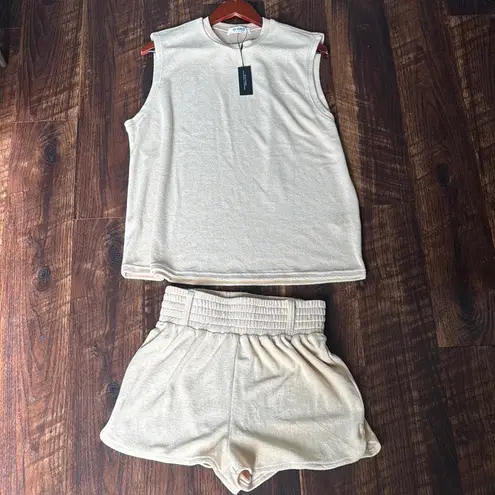 4th & RECKLESS Camel Beige TERRY TOWELLING HIGH WAISTED mini shorts set sz 6 - $50 New With Tags - From Sandra
