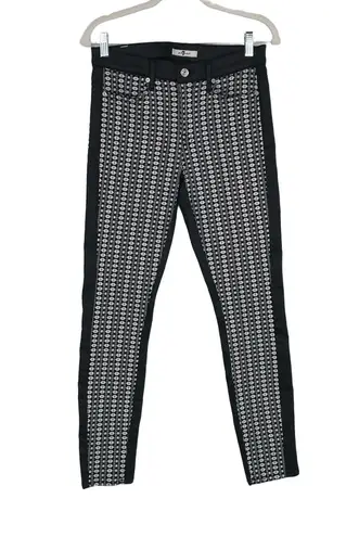 Step out in distinctive style with these 7 For All Mankind jeans, ideal for elevating any outfit. This premium pair features a striking black and white geometric pattern on the main panels, beautifully complemented by sleek, solid black side stripes. Crafted with a comfortable yet flattering fit, these jeans blend high-fashion aesthetics with everyday wearability. They are a versatile addition to your wardrobe, perfect for creating a bold and modern statement.