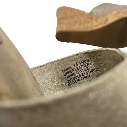 70 Post Paris Lainie Gold Leather Wedge Size 8.5 Open Toe Cork Heel - $18 - From Amber
