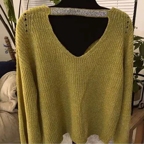89th Madison! Back and front deep V oversized sleeve bling back sweater Yellow Size XL - $46 New With Tags - From Tiffany