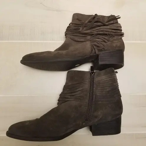 Vince Camuto Ankle Boots Style: Saree Suede construction Color: Dark Gray (Looks gray/brown) Side zi... Show more