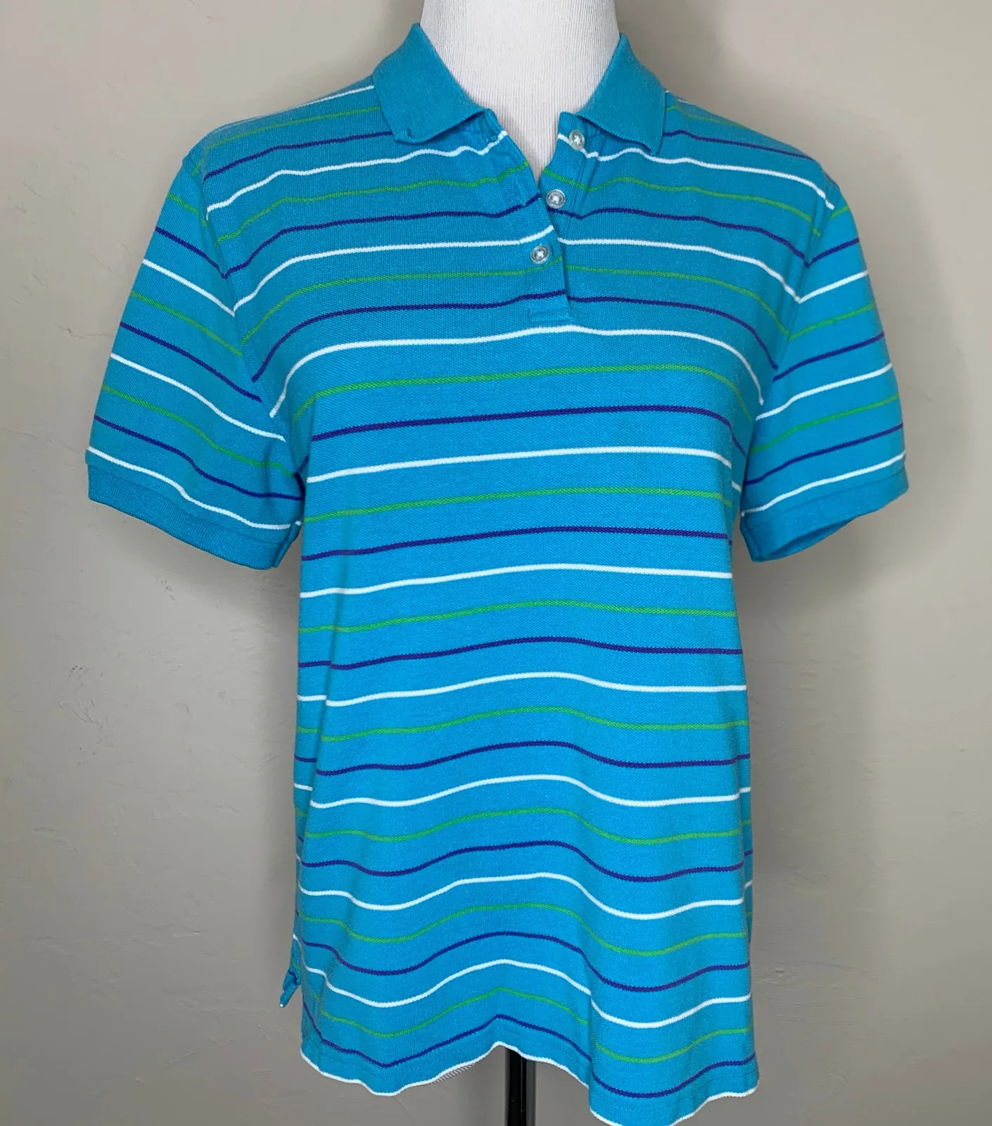 90s Turquoise Stripe Crop Polo Shirt Large Blue Size M - $20 - From Kayla