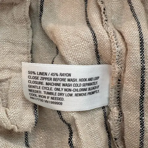 Stylish beige pants with black pinstripes. Perfect for any occasion.