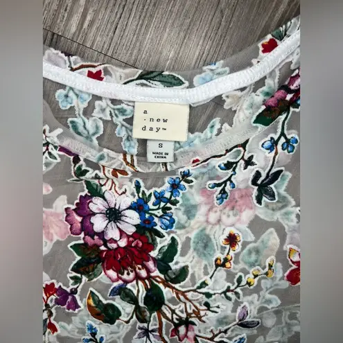 Vibrant floral top by A New Day. Features red, pink, and blue flowers.