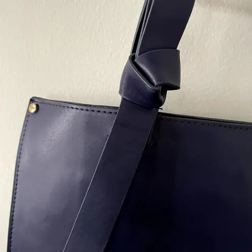 A spacious navy blue handbag with an inner zippered pocket. One size.