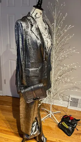 NWT A New Day by Target Matching Set Loungewear Pewter Shiny Metallic Blazer jacket two buttons with... Show more
