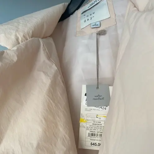 A New Day light cream peach tone puffer coat waterproof outwear long coat jacket fall winter NWT XS