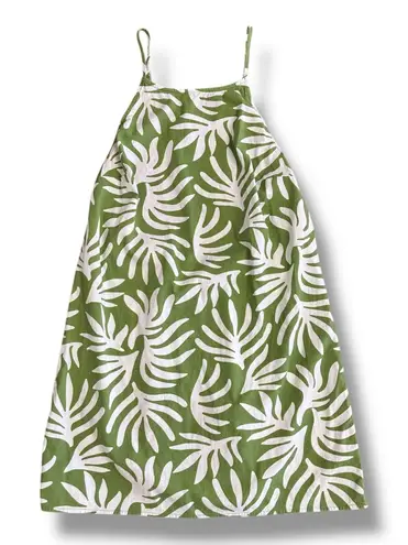 Effortlessly breezy A New Day tropical leaf print halter dress in green and white. This lightweight cotton-rayon blend dress features adjustable spaghetti straps, a tie-back halter neckline, and a stretchy elasticized back panel for comfort. Its relaxed A-line silhouette drapes beautifully, making it perfect for summer, travel, or resort wear. Designed with an easy, breathable fabric and minimalist cut that echoes 2025’s trending “Coastal Escape” aesthetic — pairing well with woven bags, strappy sandals, or denim jackets.