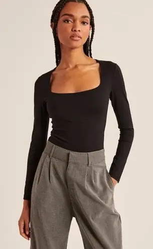 Slim-fitting long-sleeve bodysuit in soft matte seamless fabric, with square neckline and two-snap b... Show more