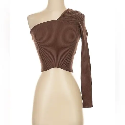 Abercrombie And Fitch Asymmetrical One Shoulder Long Sleeve Stretch Knit Top Brown Medium A super c... Show more