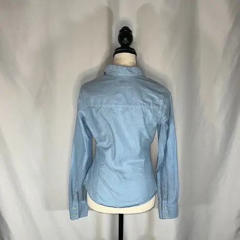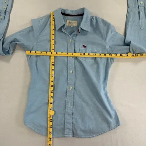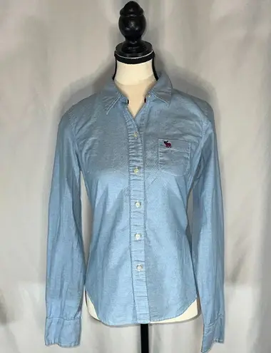 This product is a women's size medium chambray button-up top by Abercrombie and Fitch. Made from cot... Show more