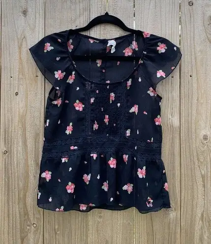 Abercrombie & Fitch navy floral cottagecore top size xs. Preowned good condition. Semi sheer; has la... Show more