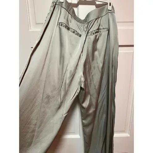 Ultra high rise pants in soft satin fabric and tailored wide-leg silhouette, featuring figure-flatte... Show more