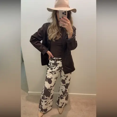 Trendy cow print Worn once and have been washed! “This fit is slouchy at the waist and hips, and ea... Show more