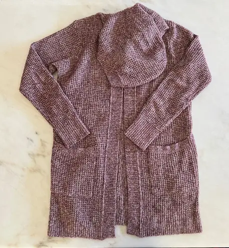 Abercrombie Fitch hooded cardigan sweater in a mauve speckled knit. This open-front cardigan feature... Show more