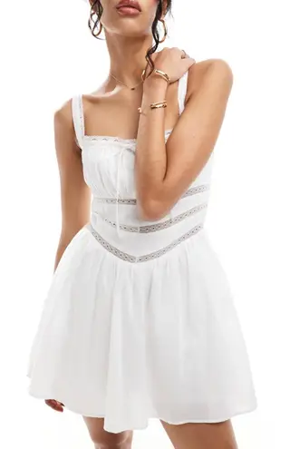 • Gorgeous adjustable spaghetti strap romper in white with ruched bust, bow, and subtle eyelet detai... Show more
