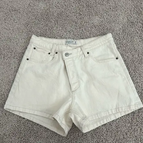 Abercrombie The 90s Rekaxed Cutoff Short High Rise Sz 10/30 Slanted button fly Cream color denim... Show more