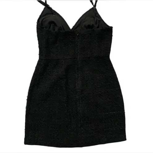 • Tweed v neck mini dress with under bust detailing, adjustable spaghetti straps and zip closure •... Show more