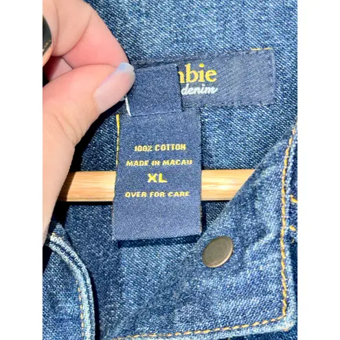 Abercrombie & Fitch Blue Denim Medium Wash Studded Button Front Jean Jacket Coat Womens Size Extra L... Show more