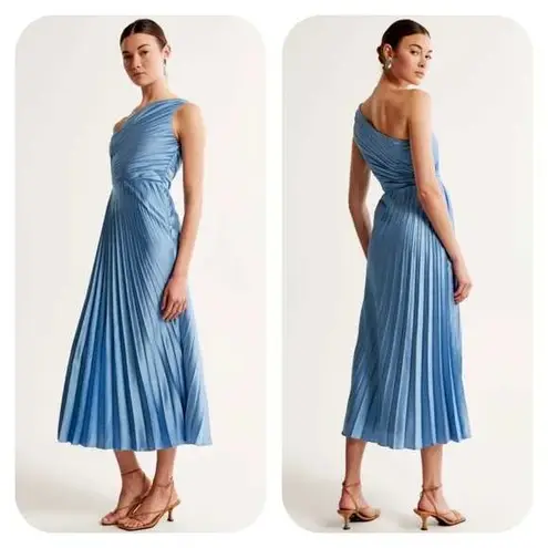 Abercrombie & Fitch Blue Satin Pleated One Shoulder Sleeveless Maxi A-Line Dress Size M Size: Mediu... Show more