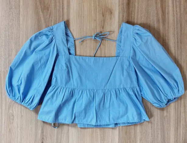 Cropped Blouse - Blue Poplin material, with tie on the back Size S BRAND NEW never worn