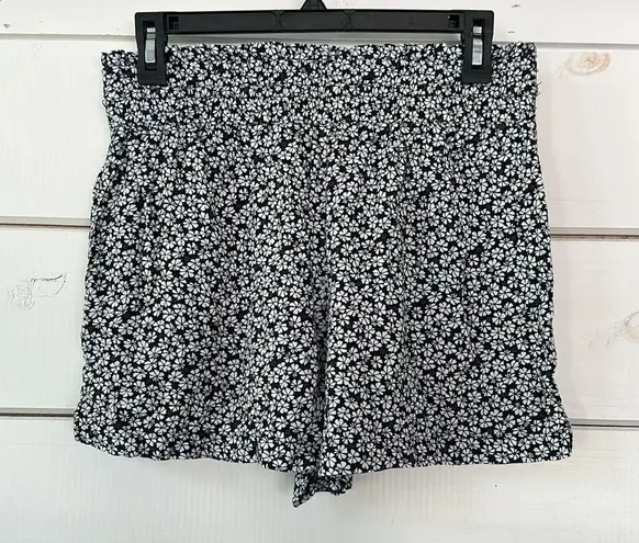 Abercrombie & Fitch Ditsy Floral High Waisted Pull On Shorts Size: Medium Color: Navy accented in w... Show more