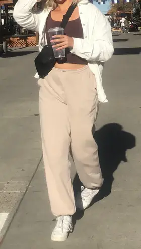 some piling as shown in photo . adjust drawstring on ankle and waist . size S . baggy .