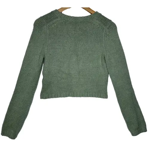 Abercrombie & Fitch Light Sage Green Ribbed Knit Button Front Cropped Long Sleeve V-Neck Cardigan Sw... Show more