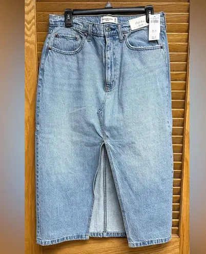 Elevate your wardrobe with the Abercrombie & Fitch High Rise Denim Midi Skirt. Crafted from premium... Show more