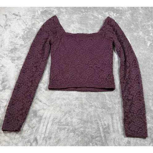 Abercrombie & Fitch Lace Top Square Neck Long Sleeve Sweetheart Purple S