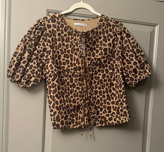 Stylish leopard print blouse. Puff sleeves. Tie-front detail.
