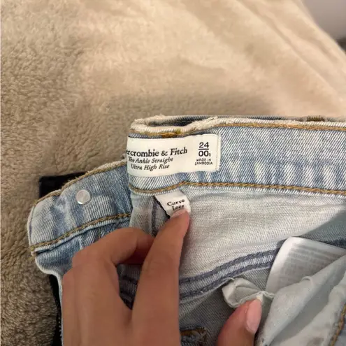 Trendy light blue boyfriend jeans with a relaxed fit. Features stylish distressing for a modern look... Show more