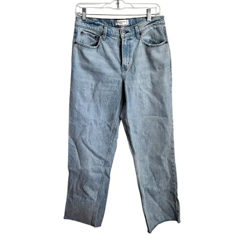 Our classic 90s straight fit in a medium wash with a raw hem. Features a mid rise that is fitted at... Show more