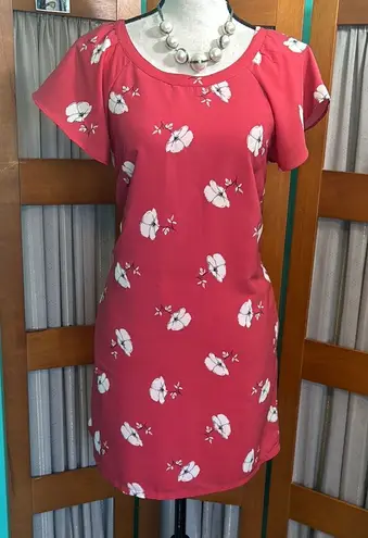 Abercrombie & Fitch brand Chic redish pink midi shift dress with white floral pattern. Short flappy... Show more