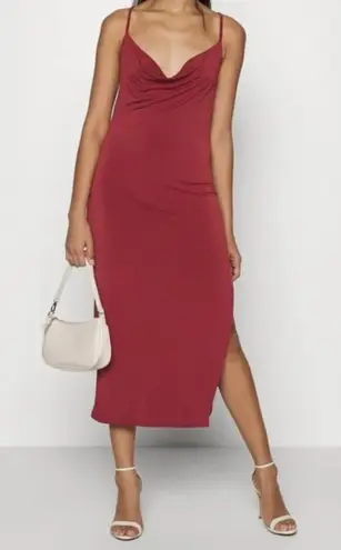 Abercrombie & fitch red cowl neck midi dress with side slit & criss cross back Size: Medium No majo... Show more