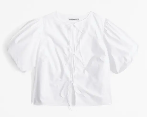 Size M, great condition, puff sleeves, adjustable tie front closures, white