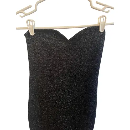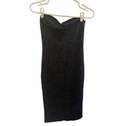 Keywords: strapless dress, midi dress, black dress, glitter dress, party dress, cocktail dress, evening dress, sleeveless dress, bodycon dress, formal dress, special occasion dress, womens dress, sparkly dress, club dress