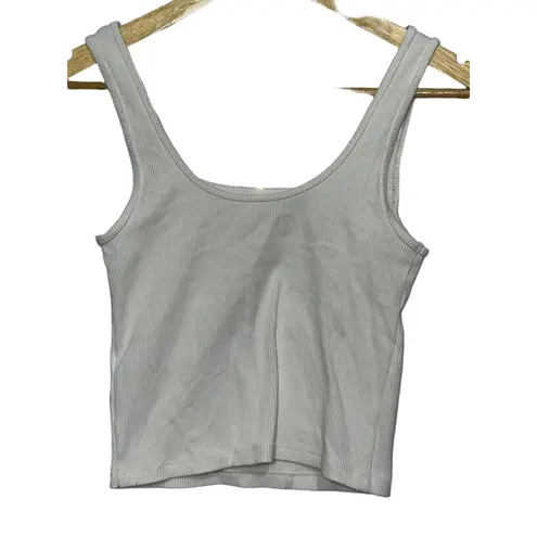Abercrombie & Fitch Soft A&F Collection White Ribbed Knit Nylon Spandex Sleeveless Scoop Neck Crop Top Cropped Tank Top Womens Size Small, Size S