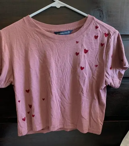 Super cute cropped t shirt with velvet hearts. Barely worn and in great condition! Size XS but fits... Show more