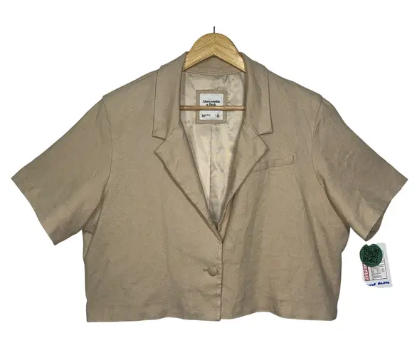 Abercrombie & Fitch Tan Beige Linen Blend Cropped Short Sleeve Blazer Jacket Womens Size Extra Large... Show more