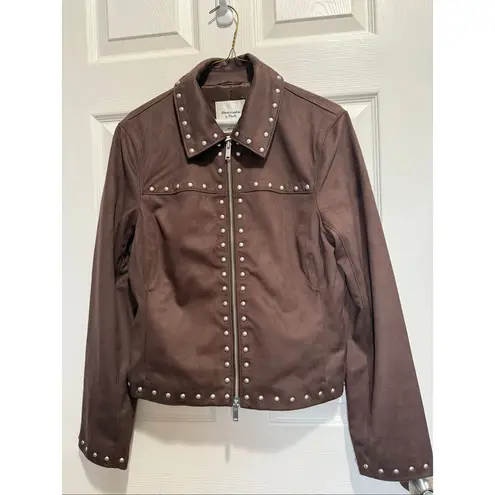 Studded details throughout Double zipper closure Classic fold down collar Interior lining Side pock... Show more
