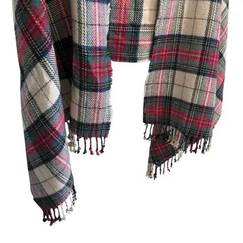One size Oversized Tan red green tartan plaid Fringe on ends Wide enough to be worn as a shawl, can... Show more