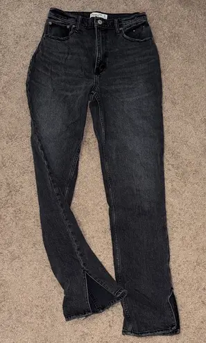 Chic dark gray straight leg jeans. Ideal for casual wear.