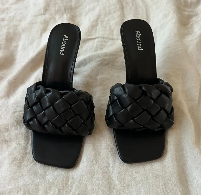 Abound Myley woven heeled sandal in black. Some wear but still in good condition. Very comfy. Size 7... Show more